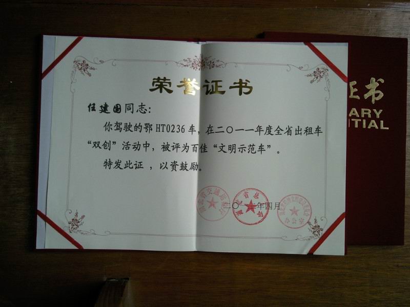 在創(chuàng)建和諧勞動關系活動中,荊門市公交出租汽車有限公司充分發(fā)揮和調動廣大駕駛員的勞動熱情和創(chuàng)造活力,獲得了一系列可喜成績。雷鋒車隊隊長曾凡華,2011年獲得省雙創(chuàng)“文明示范車”、荊門市出租行業(yè)“服務先鋒號”;2012年獲得荊門市“十佳的哥”榮譽稱號;前任隊長王建春獲得省交通廳“優(yōu)秀班組長”榮譽稱號;隊員任建國獲省交通廳“文明示范車”先進個人稱號。2013年6月,公司雷鋒車隊獲“全國工人先鋒號”榮譽。2014年2月28日,公司鄂HT1223雷鋒車駕駛員張華維獲省精神文明建設委員會辦公室、省交通運輸廳“雷鋒號”榮譽標牌。雷鋒車隊先后涌現(xiàn)出一批優(yōu)秀駕駛員,分別獲得了荊門出租汽車行業(yè)“服務先鋒號”、“十佳的哥的姐”等稱號及“荊門市道德模范提名獎”、“荊門市見義勇為先進集體”。