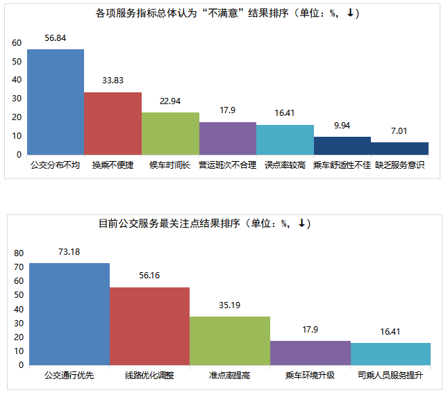 本次調(diào)查共收集有效問(wèn)卷1471份,623條相關(guān)問(wèn)題及建議。問(wèn)卷涵蓋公交線網(wǎng)優(yōu)化、文明服務(wù)、換乘便捷度、候車(chē)時(shí)間、乘車(chē)舒適度、智能信息建設(shè)等多方面內(nèi)容。調(diào)查顯示,參與投票人群年齡結(jié)構(gòu)主要集中在18~59歲,其中以40~59歲為主體。(一)公交服務(wù)滿意度指標(biāo)及數(shù)值根據(jù)交通運(yùn)輸部GB/T 36953.2-2018城市公共交通乘客滿意度評(píng)價(jià)方法,公共交通乘客滿意度指乘客對(duì)公共交通服務(wù)質(zhì)量的滿意程度,評(píng)價(jià)程度設(shè)置為“很滿意”、“滿意”、“一般”與“不滿意”。問(wèn)卷顯示荊門(mén)公交服務(wù)整體滿意度為91.96%。問(wèn)卷顯示公交線網(wǎng)分布不均、線路不合理、換乘不便捷為主要服務(wù)訴求,公交線路分布不均為“不滿意度”投票最高問(wèn)題;主干道公交優(yōu)先通行權(quán)為服務(wù)訴求投票最高關(guān)注點(diǎn)。 此次問(wèn)卷調(diào)查,感謝廣大市民乘客的積極參與,市公交集團(tuán)將結(jié)合實(shí)際,認(rèn)真聽(tīng)取、采納乘客提出的意見(jiàn)及建議,予以改進(jìn): 關(guān)于線路運(yùn)營(yíng)方面,對(duì)5路線(圣境山—?;郏?、88路線(東寶碧桂園—楊家橋)、58路線(碧桂園北—漳河新區(qū)政務(wù)中心)、59路線(荊楚理工學(xué)院—掇刀區(qū)政務(wù)中心)早中晚客流高峰期加密營(yíng)運(yùn)班次和增設(shè)區(qū)間班次,對(duì)33路線(楚天學(xué)?!d化三路東)、69路線(雙喜小學(xué)—園博園東門(mén))、13路線(牌樓—園博園西門(mén))進(jìn)行線路優(yōu)化,方便沿線居民出行需求;近期擬開(kāi)通碧桂園翡翠公館至長(zhǎng)崗萬(wàn)人社區(qū)、東寶政務(wù)中心至市政務(wù)中心公交線路,具體方案正逐步規(guī)劃中。