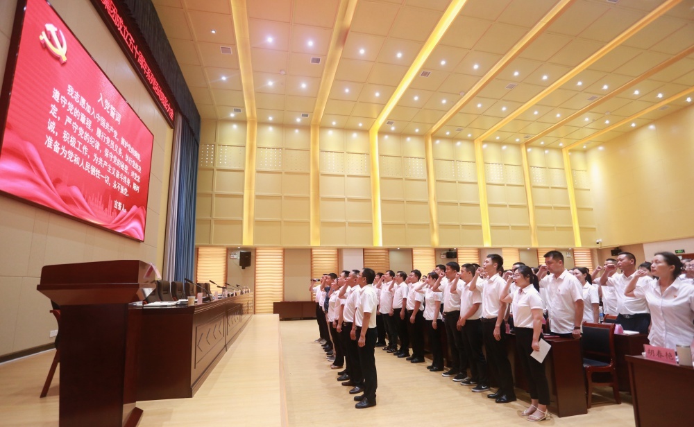 大會(huì)在莊嚴(yán)的國歌中拉開帷幕,全體黨員宣讀入黨誓詞,老黨員為新發(fā)展黨員佩戴黨徽,新發(fā)展黨員代表上臺(tái)發(fā)言。
