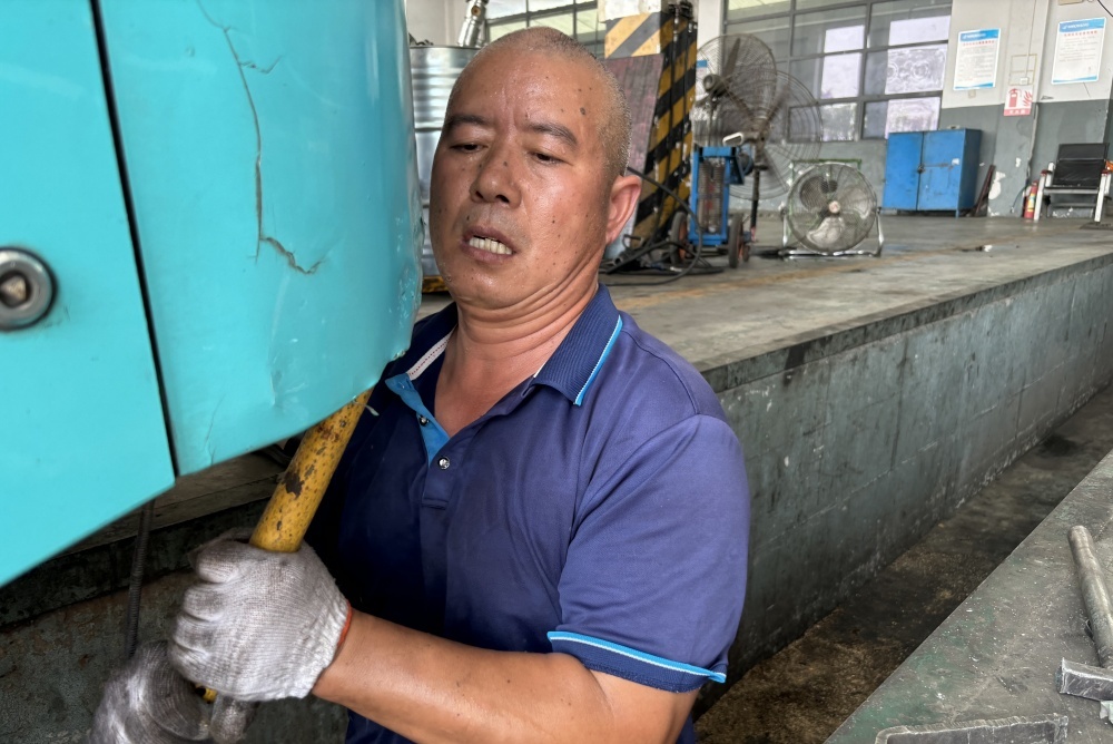 風扇吹不散車間悶熱,他全神貫注,手中工具穩(wěn)穩(wěn)擰動,只為公交車能盡快修復。