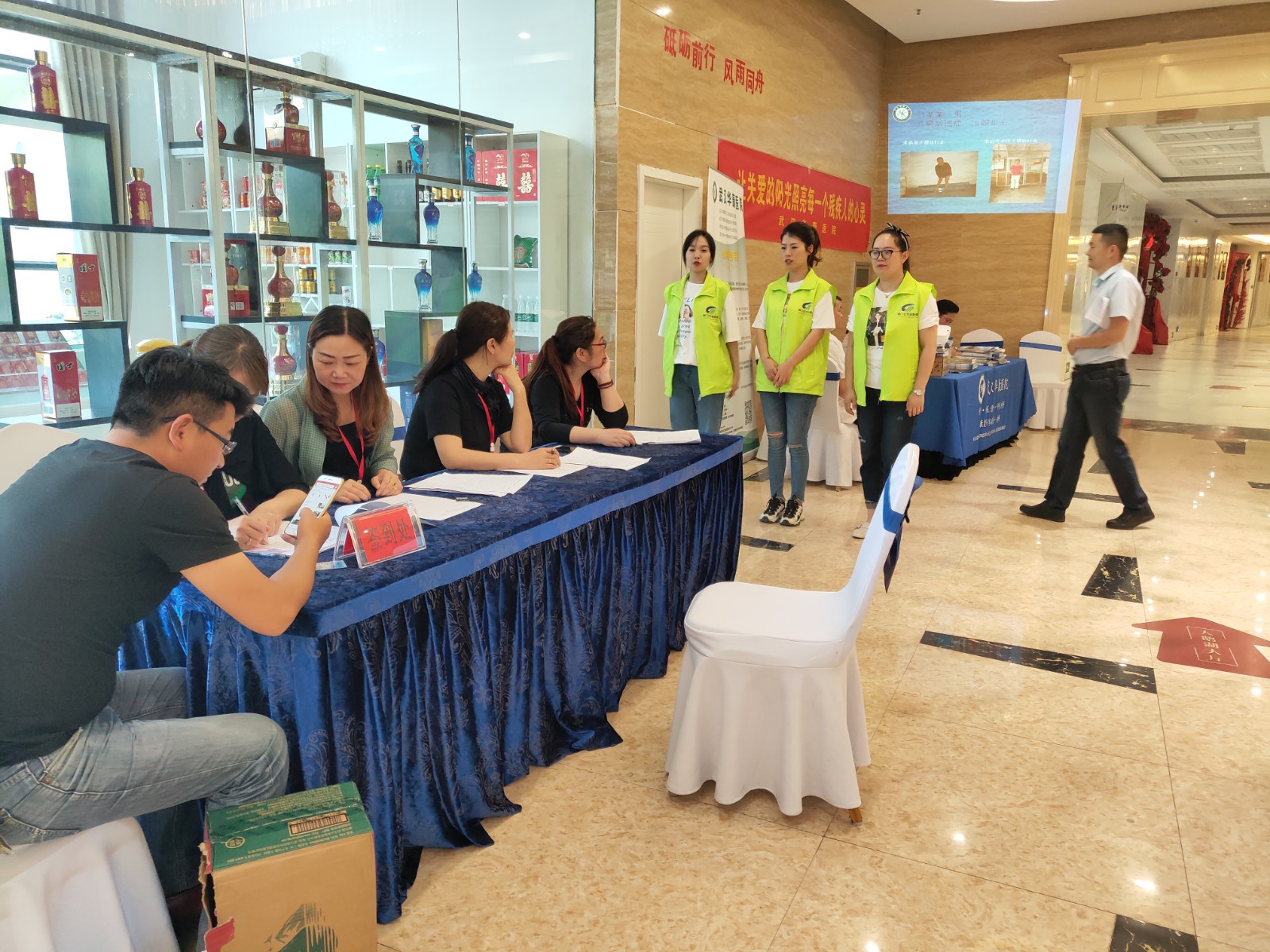 (▲圖為 簽到處 公交志愿者們等候殘疾家庭到來(lái))