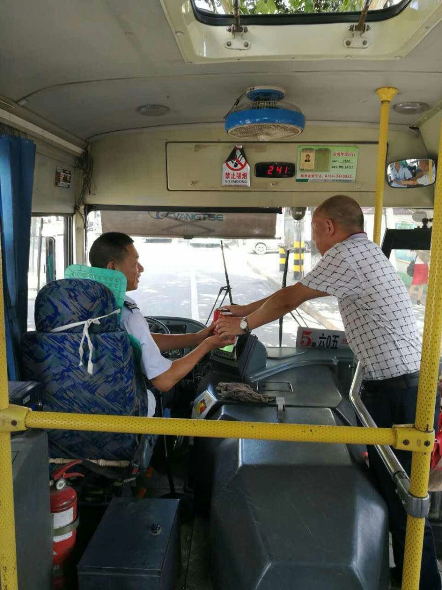 烈日炎炎,酷暑難當(dāng)。集團公司所屬各線路公交車駕駛員高溫下仍堅守崗位服務(wù)一線,保持市內(nèi)公交線路的正常運營,為市民的出行提供強有力的保障。為了鼓勵駕駛員不畏艱苦的工作精神,傳遞集團公司以及中心血站對公交駕駛員的關(guān)愛之情,7月21日下午,集團公司領(lǐng)導(dǎo)在總經(jīng)理趙吉美的帶領(lǐng)下,將中心血站送來的王老吉經(jīng)過一天的冰鎮(zhèn)后,送到了工作在一線的駕駛員手中。