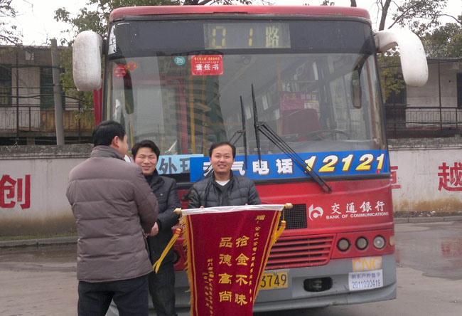 2月15日,荊門市銀都礦業(yè)有限公司總經(jīng)理鄒詩(shī)發(fā)等一行3人專程來(lái)到市公交一公司,向一公司負(fù)責(zé)人張忠林贈(zèng)送了一面寫(xiě)著“拾金不昧、品質(zhì)高尚”的錦旗,專門感謝1路駕駛員李想拾到其遺失在公交車上15萬(wàn)貨款。