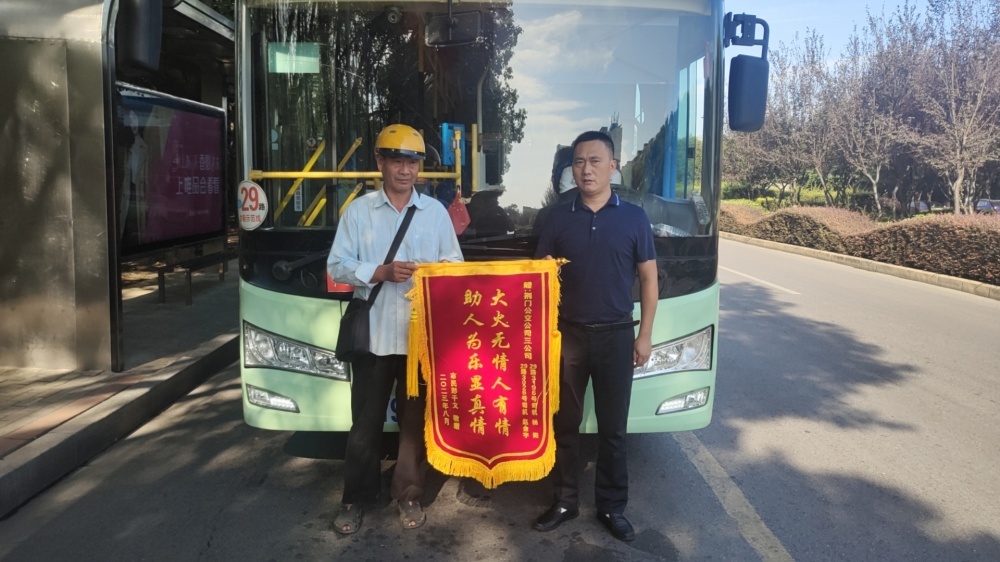 9月4日,市民賀先生拿著一副寫有“拾金不昧 品德高尚”的錦旗交給市公交集團二公司相關(guān)負(fù)責(zé)人手上,希望轉(zhuǎn)交給3路李學(xué)鋒師傅,言語間滿是感激。
