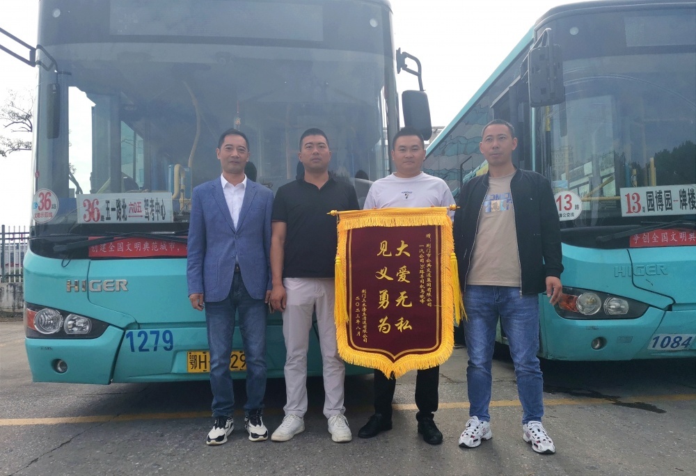 8月28日,貨車司機帶著印有“大愛無私 見義勇為”的錦旗,再次來到市公交集團,親手將錦旗送到馬曉峰手中,真誠地感謝馬曉峰見義勇為的高尚品德。