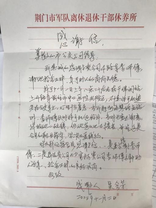 11月6日上午9時,公汽三公司收到由調(diào)度中心代收的一封感謝信,信中寫到“我真誠的感謝貴公司4路車?yán)顜煾?,謝他拾金不昧。樂于助人的高尚品德”。