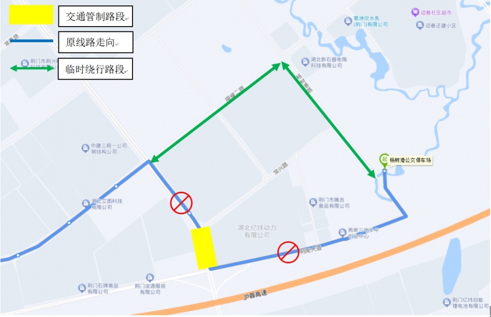 調(diào)整線路走向:原荊南大道—楊樹港路—常興路—龍井大道段調(diào)整為荊南大道—楊樹港路—福耀二路(東段)—龍井大道